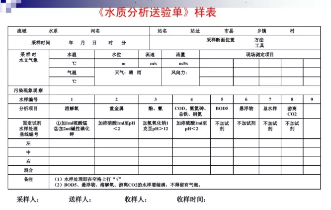 (清晰完整填寫水質(zhì)分析送驗(yàn)單)
